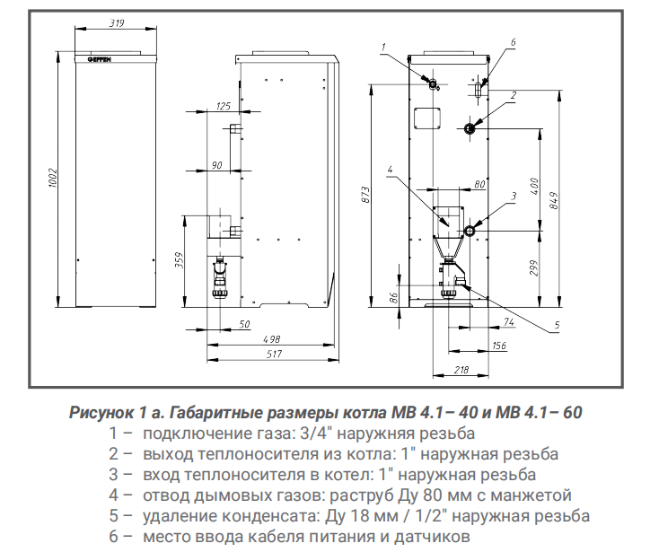 Технические характеристики газового котла GEFFEN MB 4.1-40